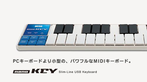 KORGから、MacBookにぴったりサイズのMIDIキーボードが登場。 nanoシリーズ : nanoKEY|KORG INC. KORGのブルーが、ちょっとチープな感じ。 色展開も希望したいところ。 パッド、フィジカルコントローラーもリリースされています。 nanoシリーズ|KORG INC.